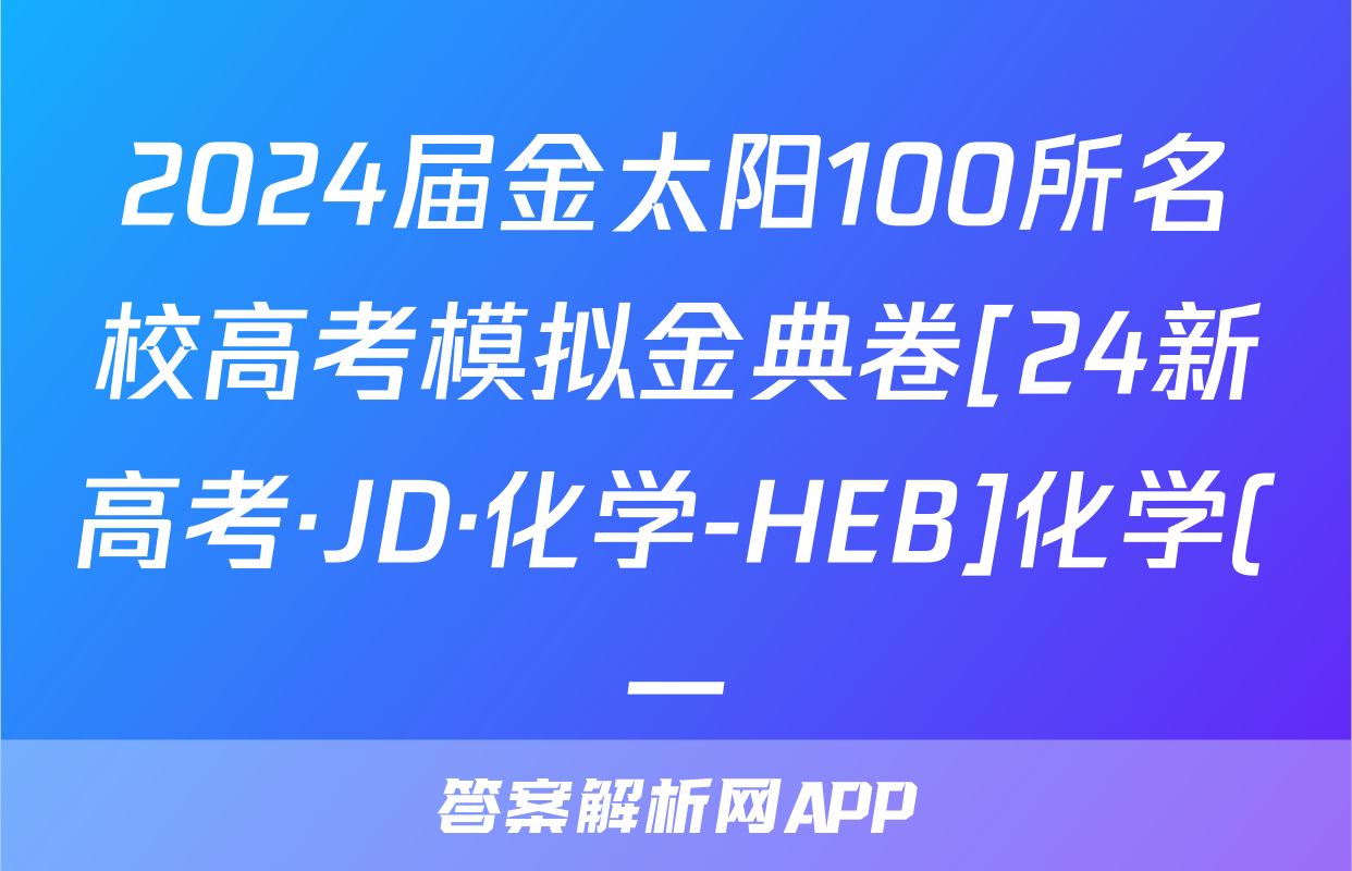 2024届金太阳100所名校高考模拟金典卷[24新高考·JD·化学-HEB]化学(一)1答案正在持续更新,目前2024-2025衡中同卷答案网为大家整理了相关试题及答案,供大家查缺补漏,高效提升成绩。