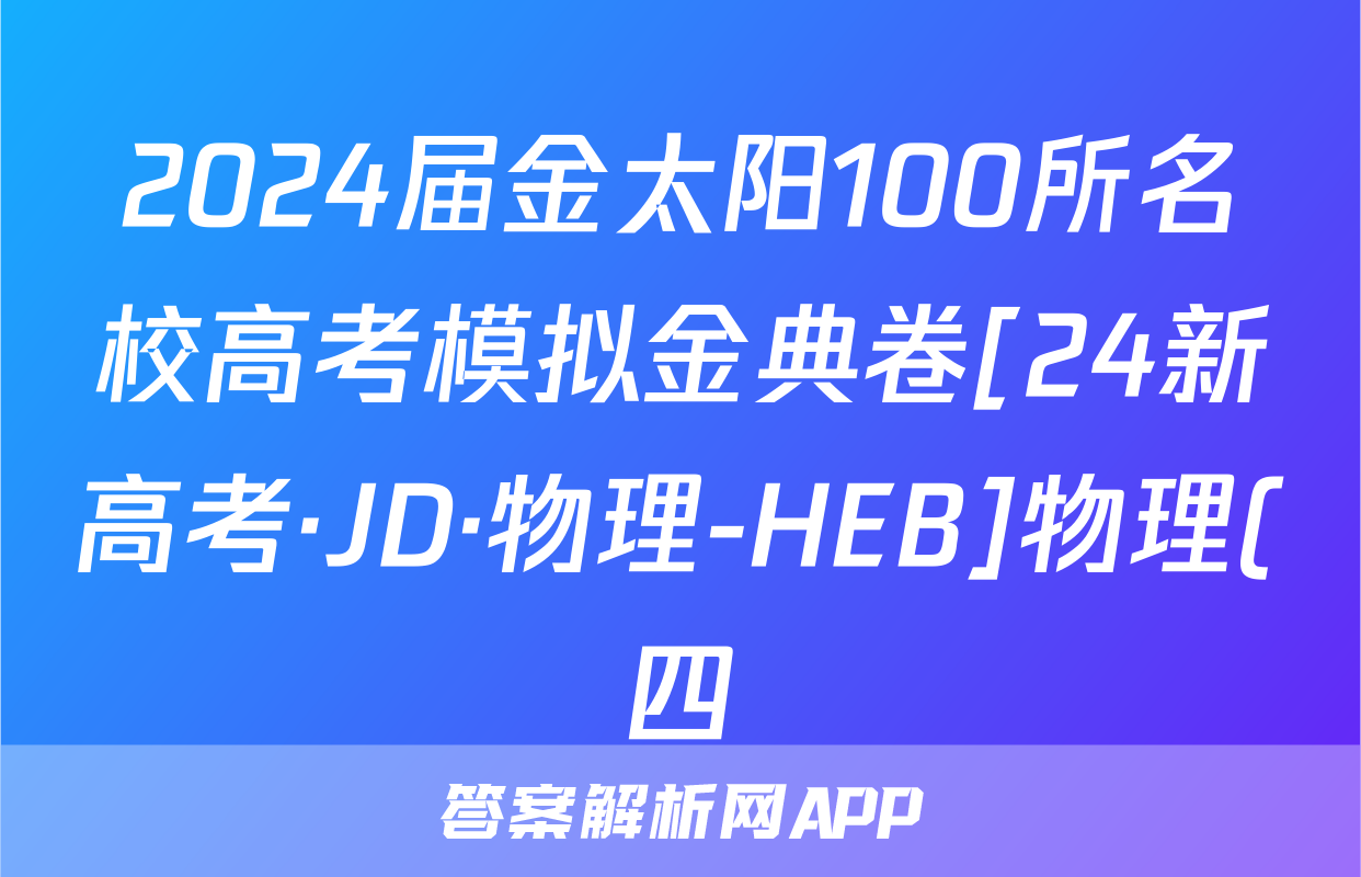 2024届金太阳100所名校高考模拟金典卷[24新高考·JD·物理-HEB]物理(四)4答案正在持续更新,目前2024-2025衡中同卷答案网为大家整理了相关试题及答案,供大家查缺补漏,高效提升成绩。