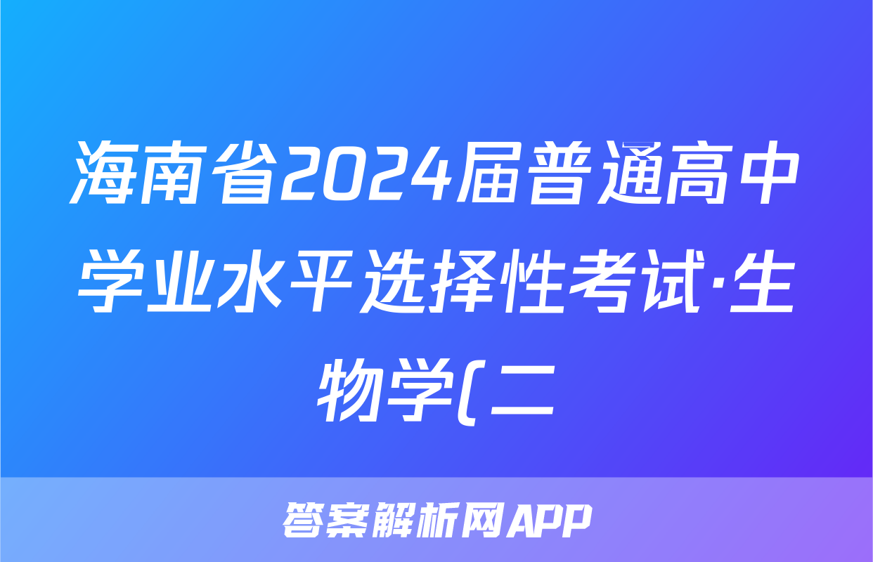 海南省2024届普通高中学业水平选择性考试·生物学(二)2[24·(新高考)ZX·MNJ·生物学·HAIN]试题正在持续更新,目前2024-2025衡中同卷答案网为大家整理了相关试题及答案,供大家查缺补漏,高效提升成绩。