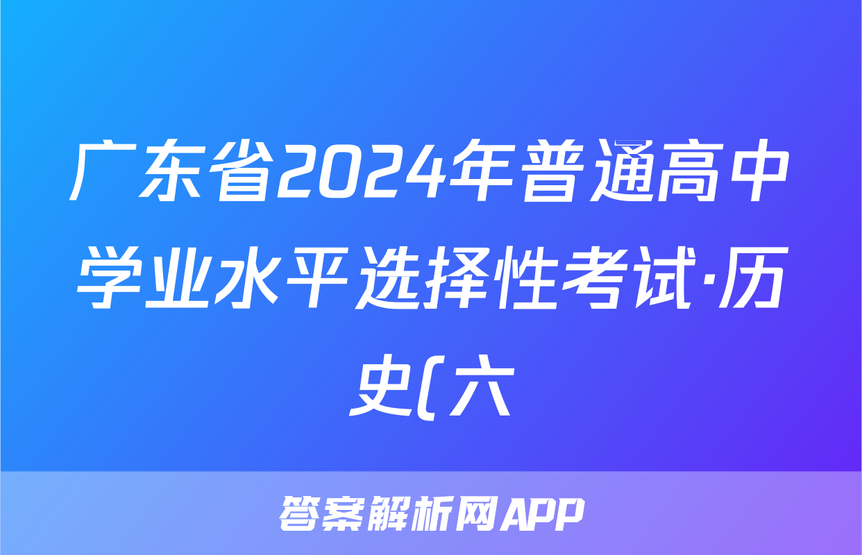 广东省2024年普通高中学业水平选择性考试·历史(六)6[24·(新高考)ZX·MNJ·历史·G DONG]试题正在持续更新,目前2024-2025衡中同卷答案网为大家整理了相关试题及答案,供大家查缺补漏,高效提升成绩。