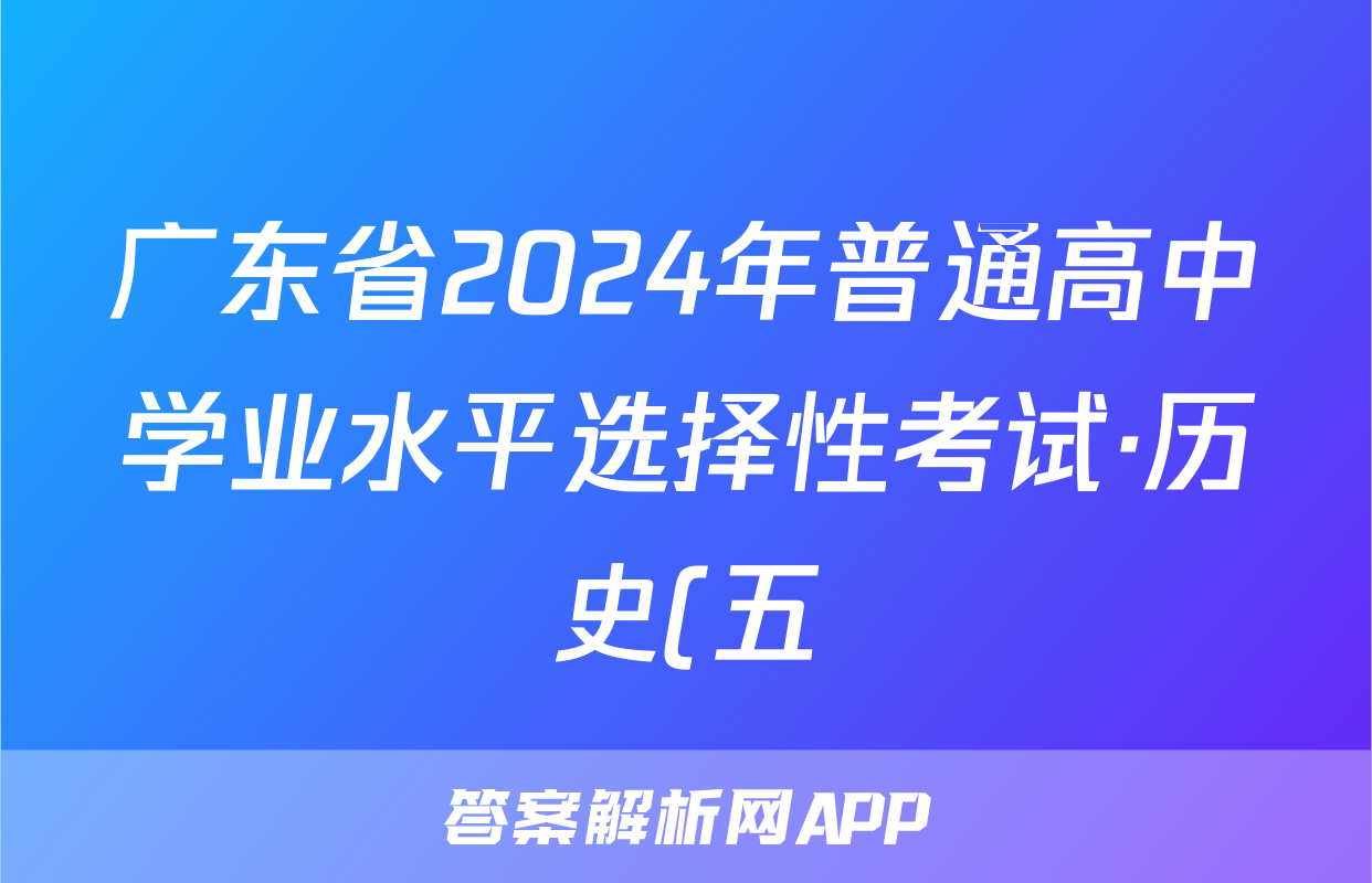 广东省2024年普通高中学业水平选择性考试·历史(五)5[24·(新高考)ZX·MNJ·历史·G DONG]试题正在持续更新,目前2024-2025衡中同卷答案网为大家整理了相关试题及答案,供大家查缺补漏,高效提升成绩。