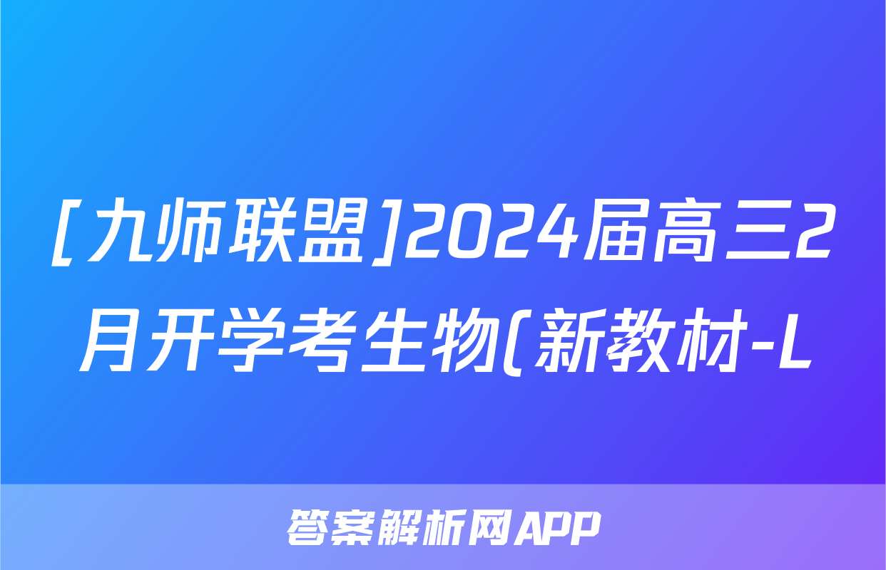 [九师联盟]2024届高三2月开学考生物(新教材-L)试题正在持续更新,目前2024-2025衡中同卷答案网为大家整理了相关试题及答案,供大家查缺补漏,高效提升成绩。