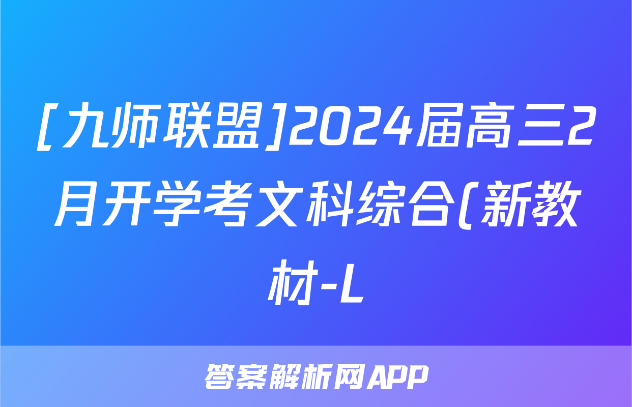 [九师联盟]2024届高三2月开学考文科综合(新教材-L)试题正在持续更新,目前2024-2025衡中同卷答案网为大家整理了相关试题及答案,供大家查缺补漏,高效提升成绩。