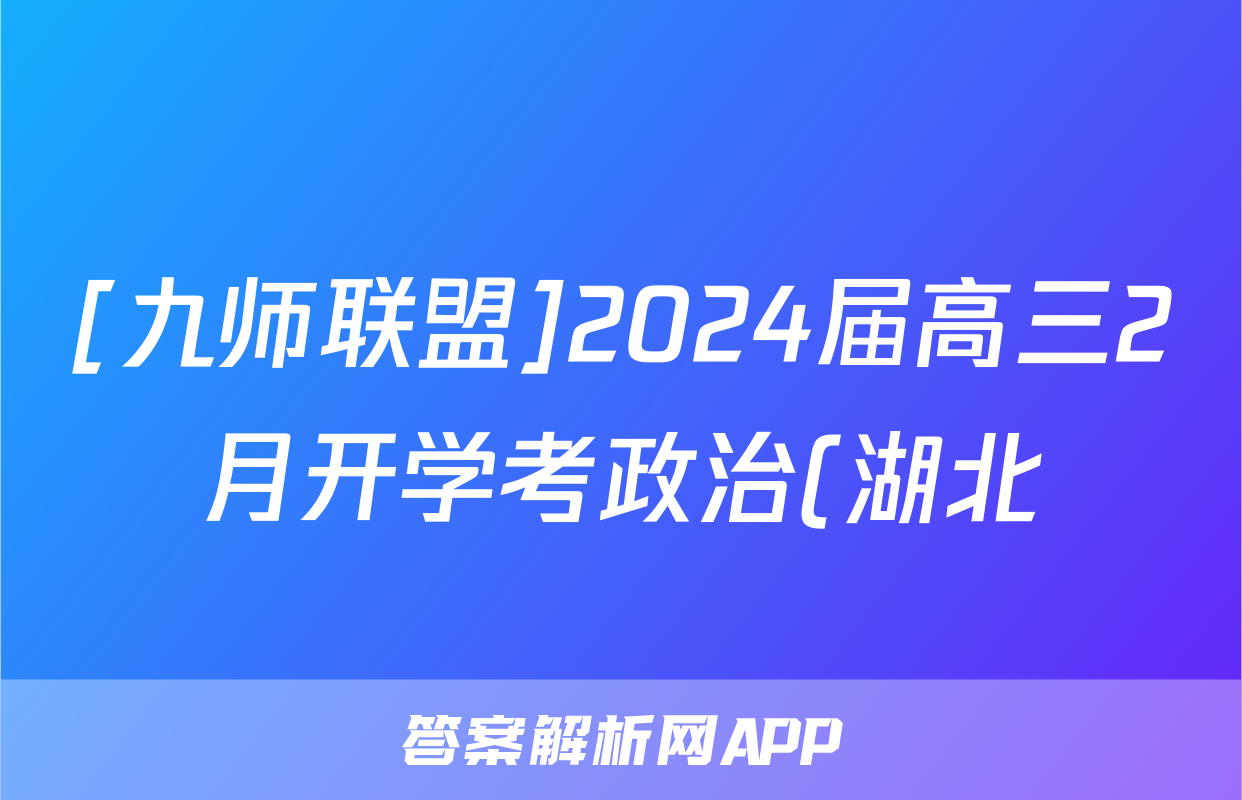 [九师联盟]2024届高三2月开学考政治(湖北)试题正在持续更新,目前2024-2025衡中同卷答案网为大家整理了相关试题及答案,供大家查缺补漏,高效提升成绩。