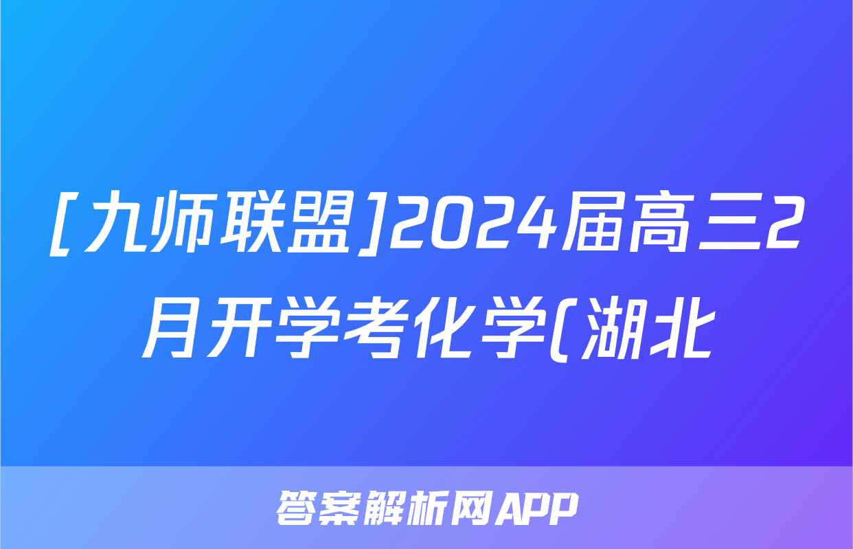 [九师联盟]2024届高三2月开学考化学(湖北)试题正在持续更新,目前2024-2025衡中同卷答案网为大家整理了相关试题及答案,供大家查缺补漏,高效提升成绩。