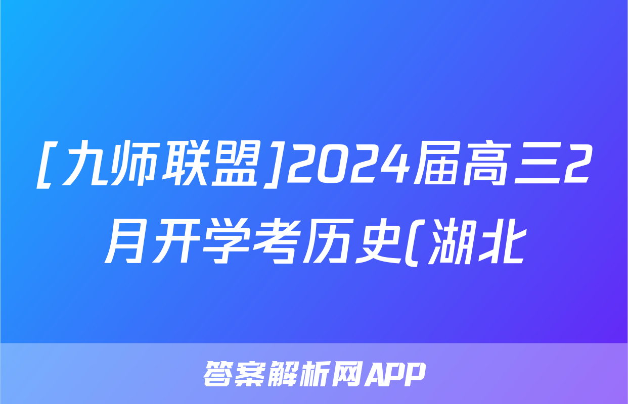 [九师联盟]2024届高三2月开学考历史(湖北)试题正在持续更新,目前2024-2025衡中同卷答案网为大家整理了相关试题及答案,供大家查缺补漏,高效提升成绩。