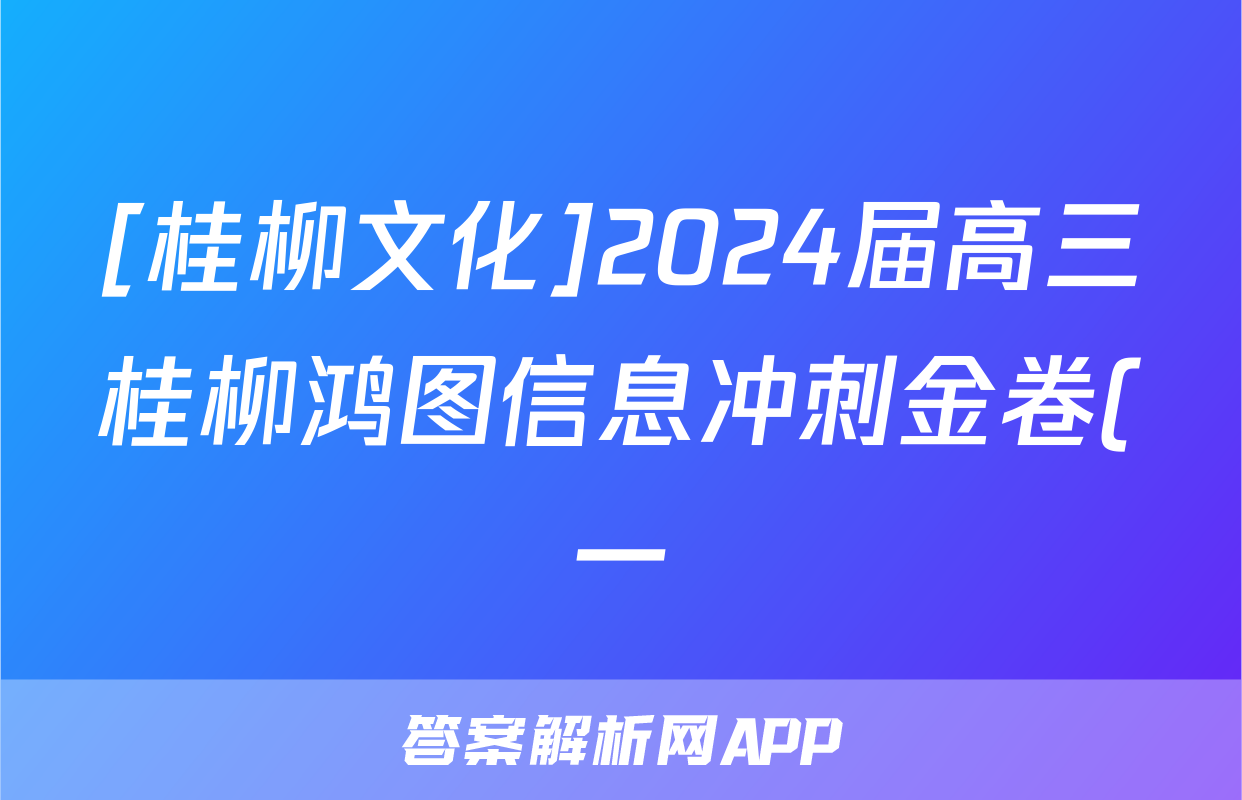 [桂柳文化]2024届高三桂柳鸿图信息冲刺金卷(一)1语文试题正在持续更新,目前2024-2025衡中同卷答案网为大家整理了相关试题及答案,供大家查缺补漏,高效提升成绩。