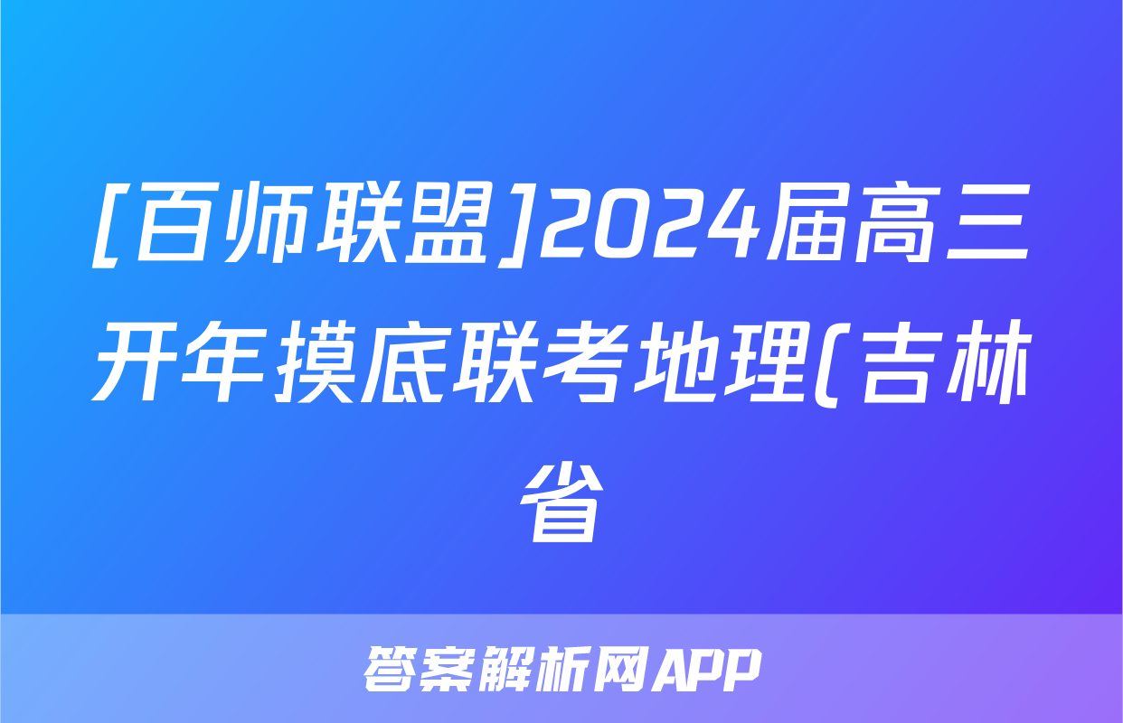 [百师联盟]2024届高三开年摸底联考地理(吉林省)答案正在持续更新,目前2024-2025衡中同卷答案网为大家整理了相关试题及答案,供大家查缺补漏,高效提升成绩。