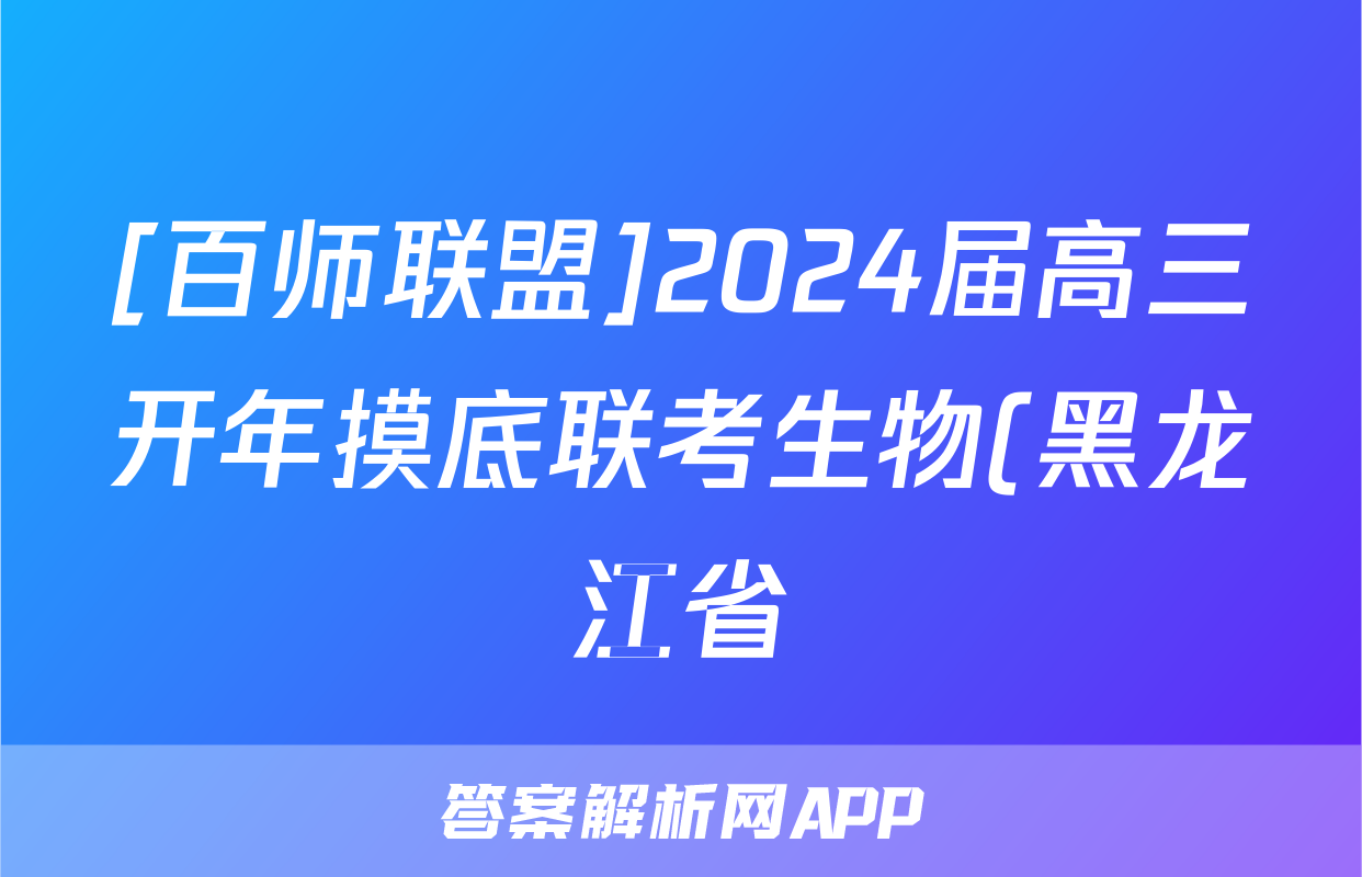 [百师联盟]2024届高三开年摸底联考生物(黑龙江省)答案正在持续更新,目前2024-2025衡中同卷答案网为大家整理了相关试题及答案,供大家查缺补漏,高效提升成绩。