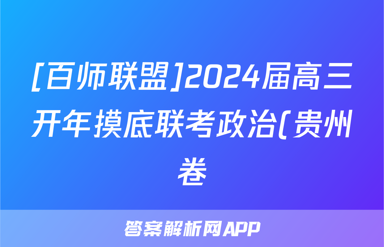 [百师联盟]2024届高三开年摸底联考政治(贵州卷)答案正在持续更新,目前2024-2025衡中同卷答案网为大家整理了相关试题及答案,供大家查缺补漏,高效提升成绩。