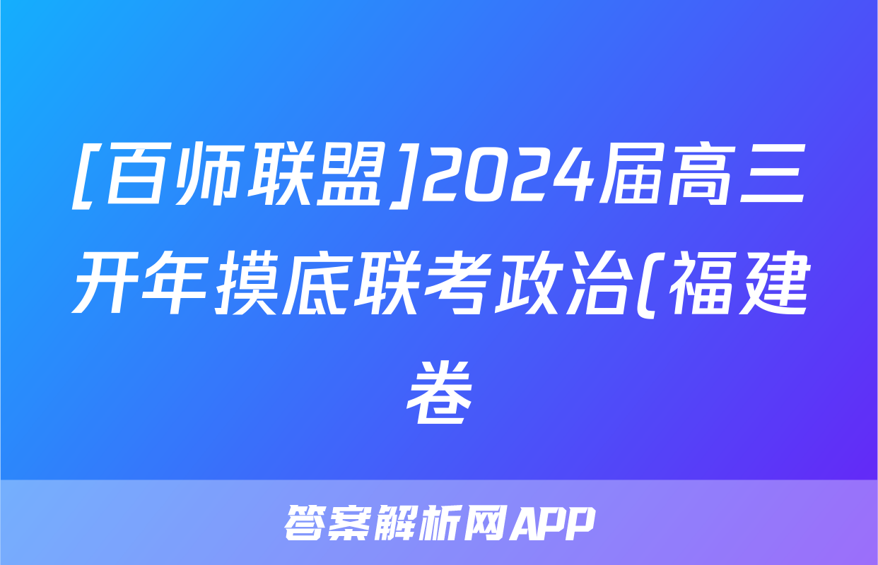 [百师联盟]2024届高三开年摸底联考政治(福建卷)答案正在持续更新,目前2024-2025衡中同卷答案网为大家整理了相关试题及答案,供大家查缺补漏,高效提升成绩。