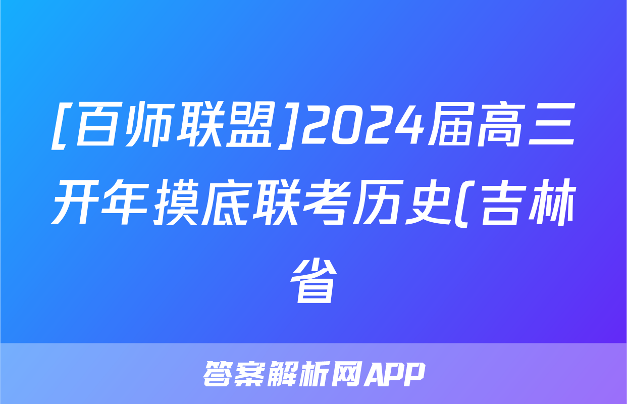 [百师联盟]2024届高三开年摸底联考历史(吉林省)答案正在持续更新,目前2024-2025衡中同卷答案网为大家整理了相关试题及答案,供大家查缺补漏,高效提升成绩。