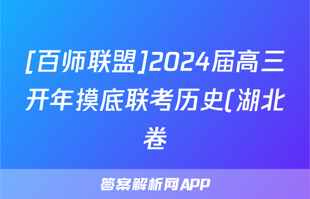 [百师联盟]2024届高三开年摸底联考历史(湖北卷)试题正在持续更新,目前2024-2025衡中同卷答案网为大家整理了相关试题及答案,供大家查缺补漏,高效提升成绩。
