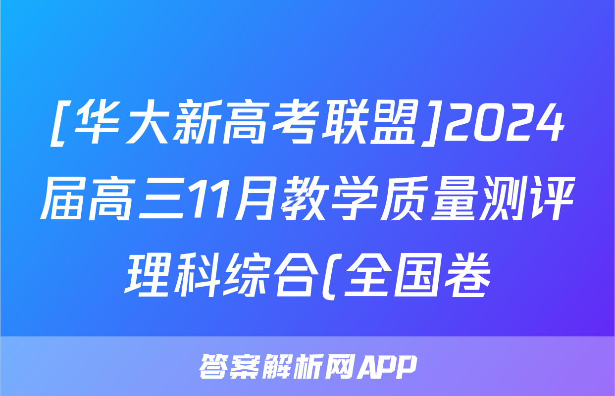 [华大新高考联盟]2024届高三11月教学质量测评理科综合(全国卷)试题正在持续更新,目前2024-2025衡中同卷答案网为大家整理了相关试题及答案,供大家查缺补漏,高效提升成绩。