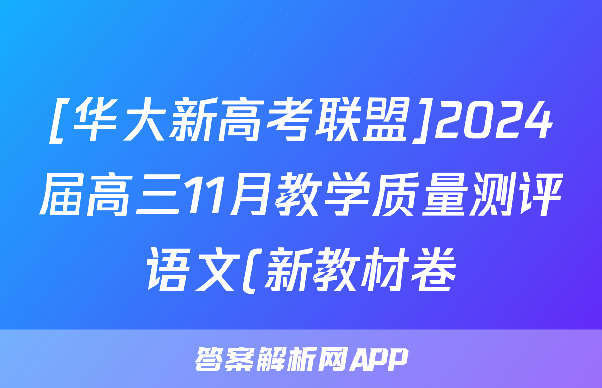 [华大新高考联盟]2024届高三11月教学质量测评语文(新教材卷)试题正在持续更新,目前2024-2025衡中同卷答案网为大家整理了相关试题及答案,供大家查缺补漏,高效提升成绩。