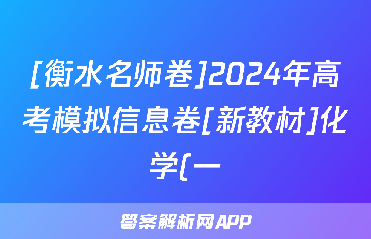 [衡水名师卷]2024年高考模拟信息卷[新教材]化学(一)1试题正在持续更新,目前2024-2025衡中同卷答案网为大家整理了相关试题及答案,供大家查缺补漏,高效提升成绩。