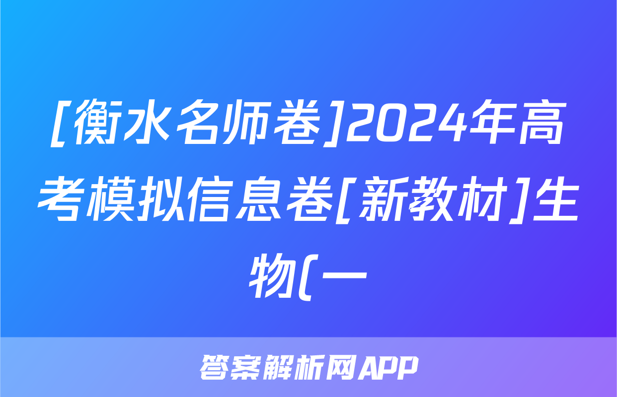 [衡水名师卷]2024年高考模拟信息卷[新教材]生物(一)1试题正在持续更新,目前2024-2025衡中同卷答案网为大家整理了相关试题及答案,供大家查缺补漏,高效提升成绩。