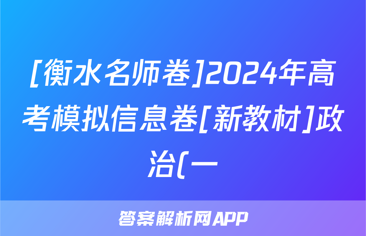 [衡水名师卷]2024年高考模拟信息卷[新教材]政治(一)1试题正在持续更新,目前2024-2025衡中同卷答案网为大家整理了相关试题及答案,供大家查缺补漏,高效提升成绩。