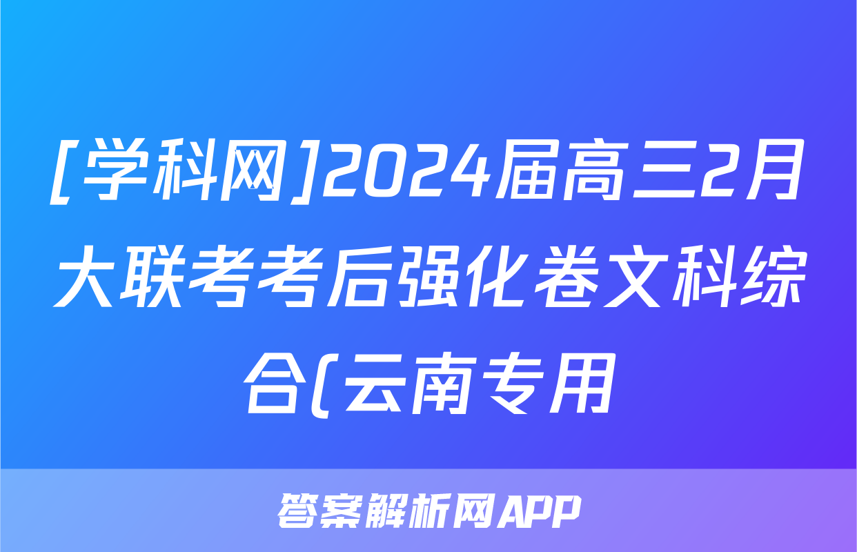 [学科网]2024届高三2月大联考考后强化卷文科综合(云南专用)答案正在持续更新,目前2024-2025衡中同卷答案网为大家整理了相关试题及答案,供大家查缺补漏,高效提升成绩。