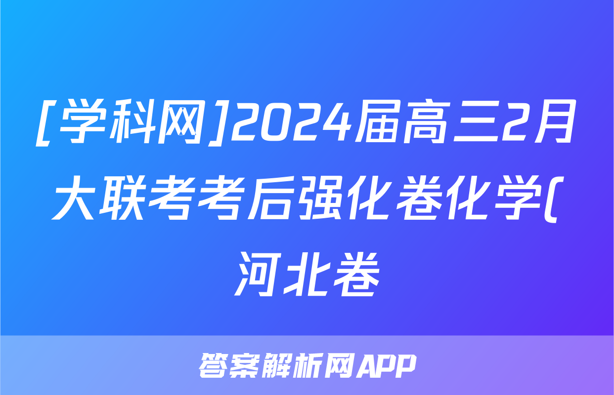 [学科网]2024届高三2月大联考考后强化卷化学(河北卷)答案正在持续更新,目前2024-2025衡中同卷答案网为大家整理了相关试题及答案,供大家查缺补漏,高效提升成绩。