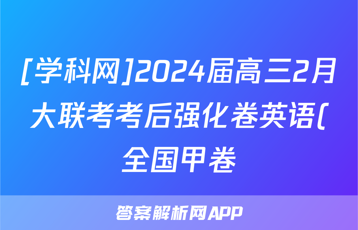 [学科网]2024届高三2月大联考考后强化卷英语(全国甲卷)试题正在持续更新,目前2024-2025衡中同卷答案网为大家整理了相关试题及答案,供大家查缺补漏,高效提升成绩。