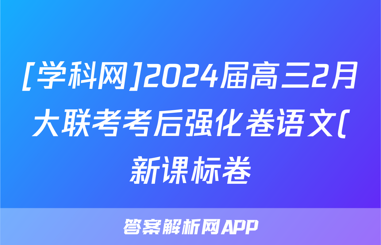 [学科网]2024届高三2月大联考考后强化卷语文(新课标卷)(新疆专用)答案正在持续更新,目前2024-2025衡中同卷答案网为大家整理了相关试题及答案,供大家查缺补漏,高效提升成绩。