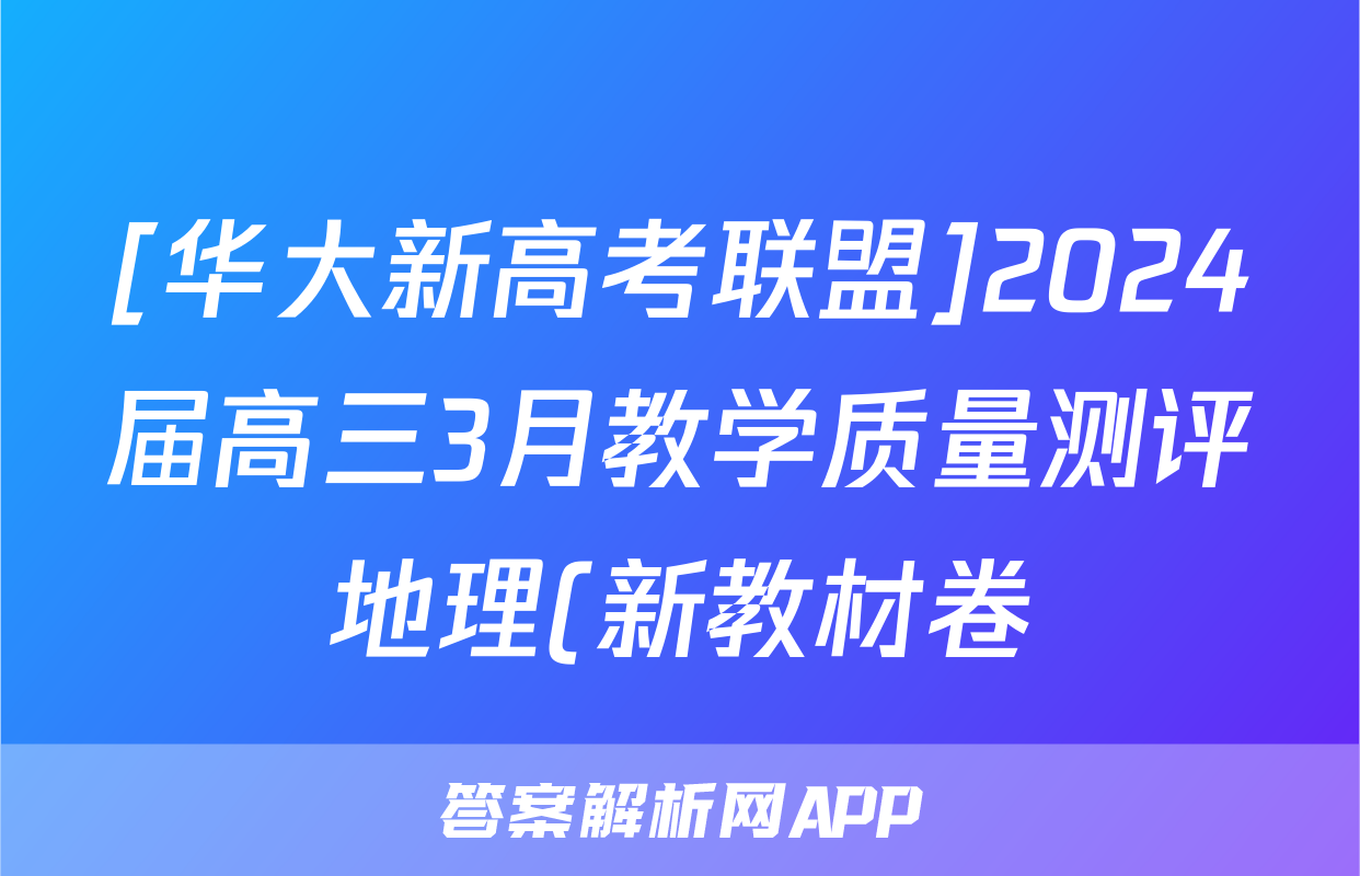 [华大新高考联盟]2024届高三3月教学质量测评地理(新教材卷)试题正在持续更新,目前2024-2025衡中同卷答案网为大家整理了相关试题及答案,供大家查缺补漏,高效提升成绩。