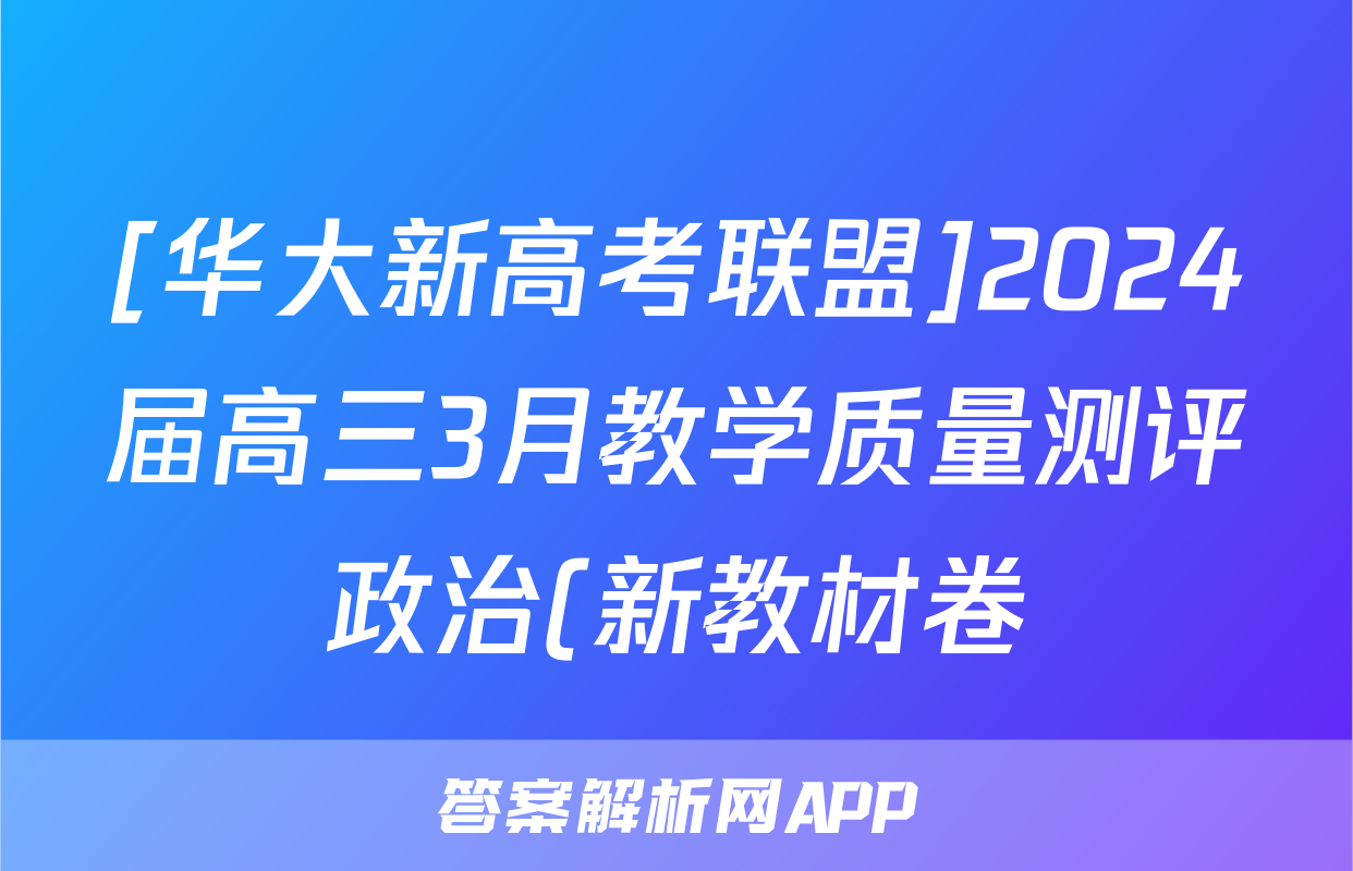 [华大新高考联盟]2024届高三3月教学质量测评政治(新教材卷)试题正在持续更新,目前2024-2025衡中同卷答案网为大家整理了相关试题及答案,供大家查缺补漏,高效提升成绩。