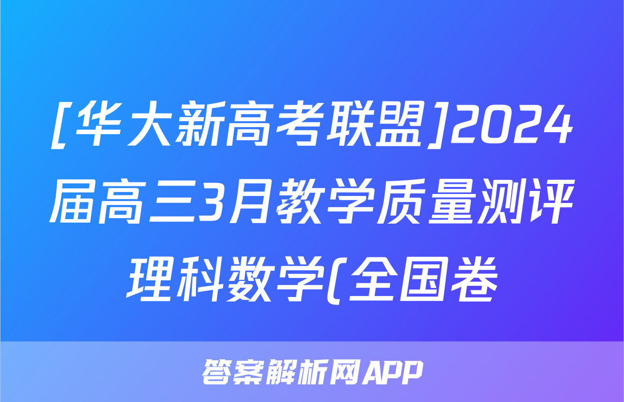 [华大新高考联盟]2024届高三3月教学质量测评理科数学(全国卷)答案正在持续更新,目前2024-2025衡中同卷答案网为大家整理了相关试题及答案,供大家查缺补漏,高效提升成绩。