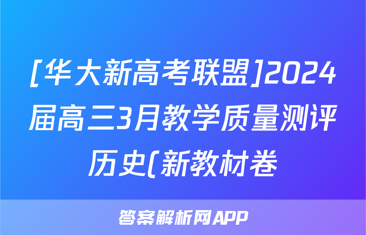 [华大新高考联盟]2024届高三3月教学质量测评历史(新教材卷)答案正在持续更新,目前2024-2025衡中同卷答案网为大家整理了相关试题及答案,供大家查缺补漏,高效提升成绩。