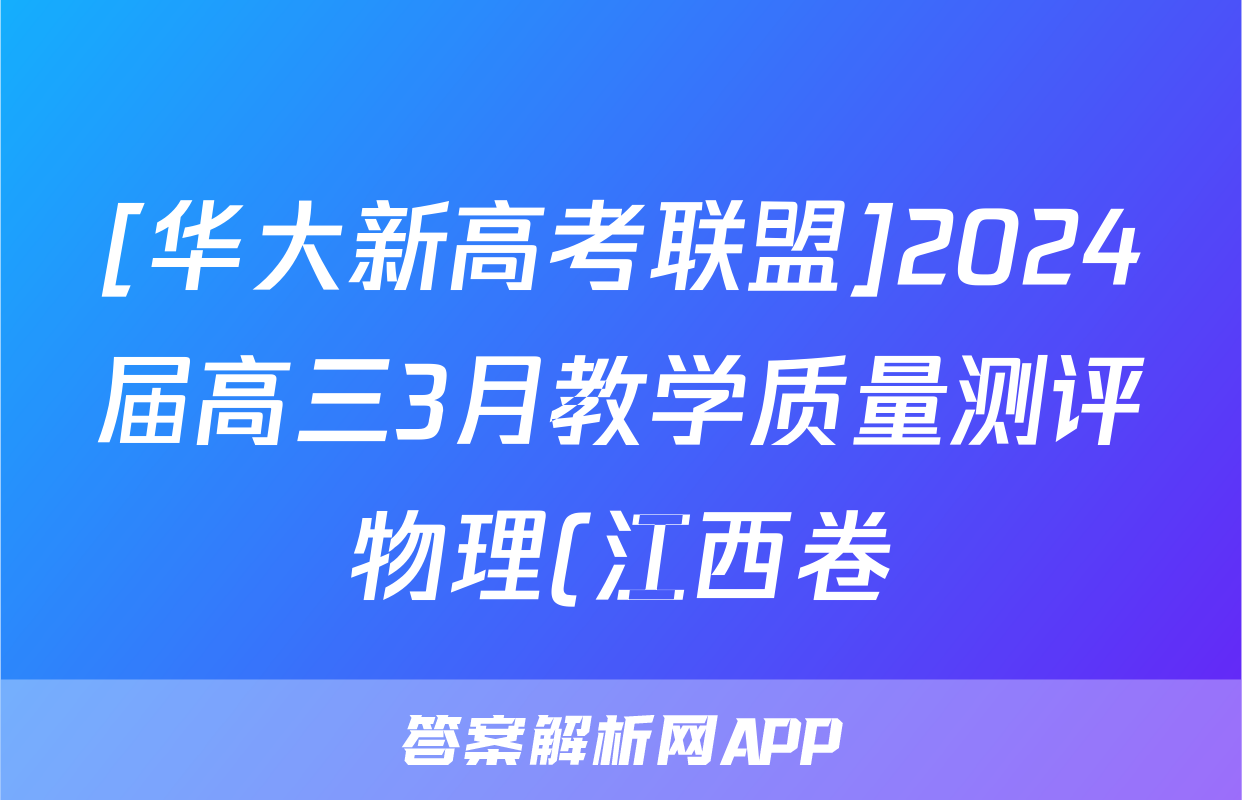 [华大新高考联盟]2024届高三3月教学质量测评物理(江西卷)答案正在持续更新,目前2024-2025衡中同卷答案网为大家整理了相关试题及答案,供大家查缺补漏,高效提升成绩。