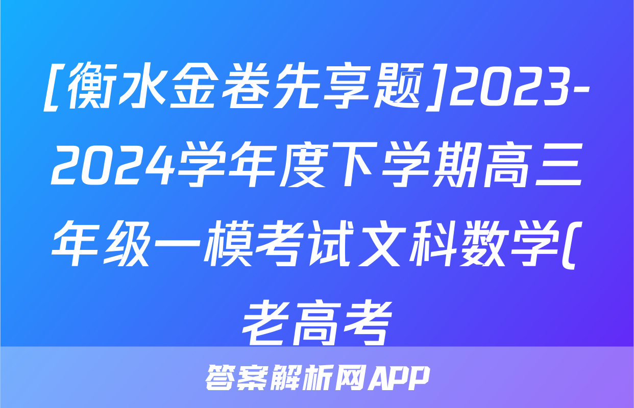 [衡水金卷先享题]2023-2024学年度下学期高三年级一模考试文科数学(老高考)试题正在持续更新,目前2024-2025衡中同卷答案网为大家整理了相关试题及答案,供大家查缺补漏,高效提升成绩。