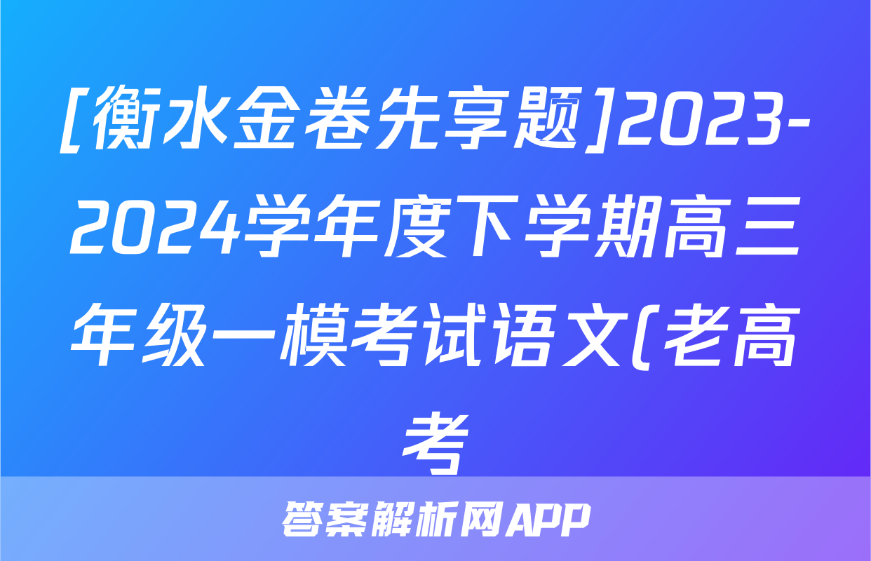 [衡水金卷先享题]2023-2024学年度下学期高三年级一模考试语文(老高考)试题正在持续更新,目前2024-2025衡中同卷答案网为大家整理了相关试题及答案,供大家查缺补漏,高效提升成绩。