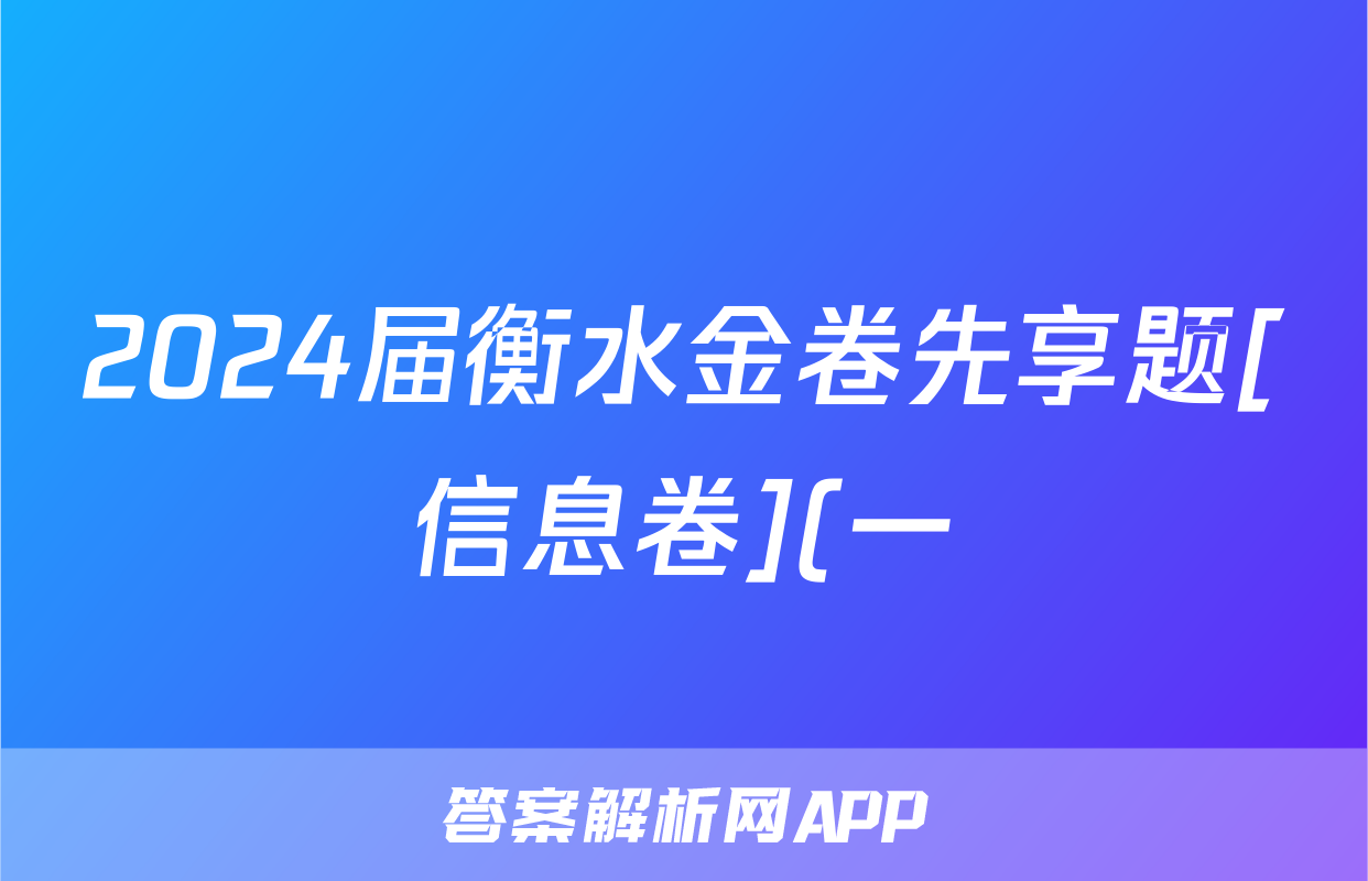 2024届衡水金卷先享题[信息卷](一)1数学(C)答案正在持续更新,目前2024-2025衡中同卷答案网为大家整理了相关试题及答案,供大家查缺补漏,高效提升成绩。