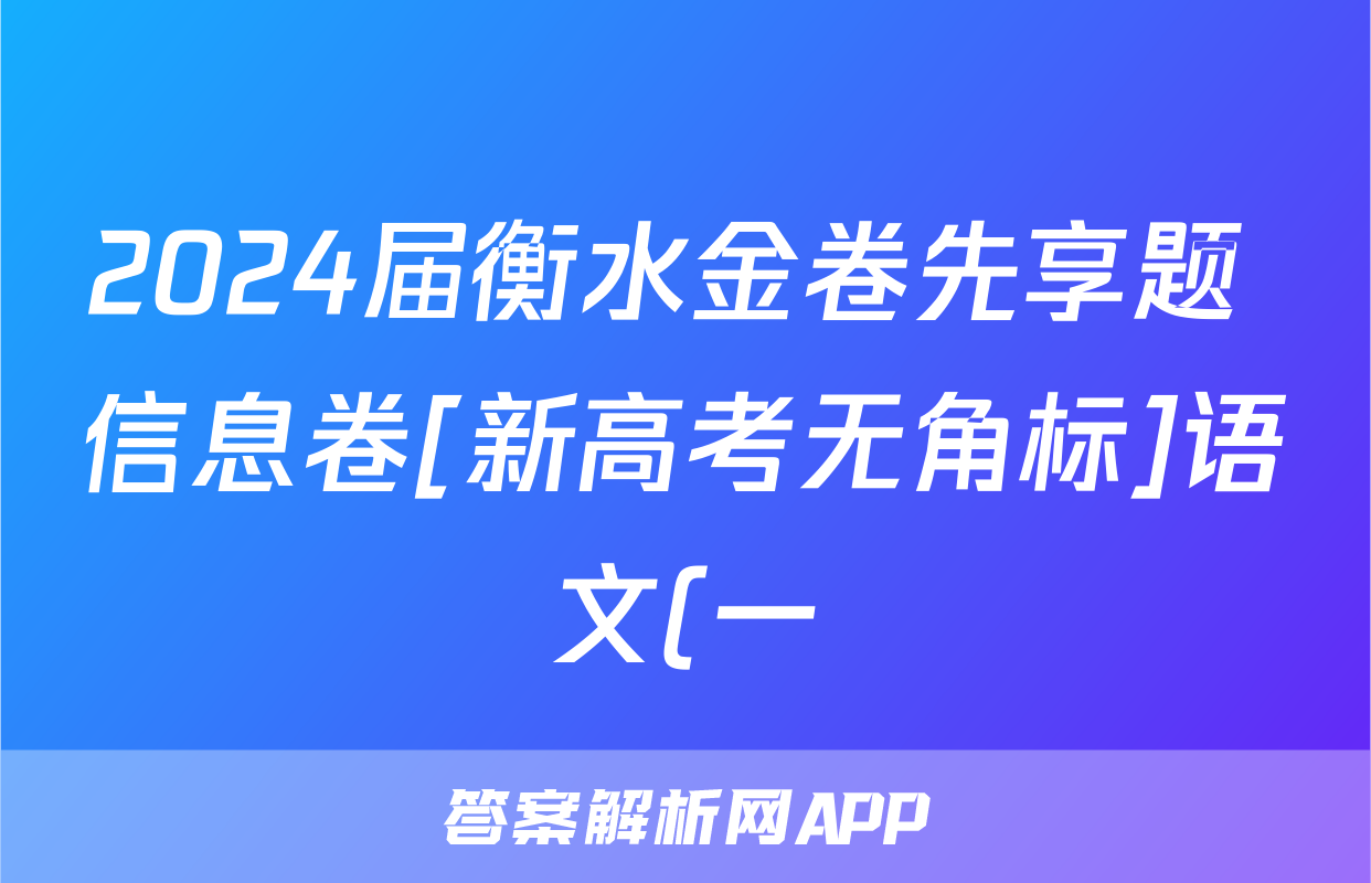 2024届衡水金卷先享题 信息卷[新高考无角标]语文(一)1答案正在持续更新,目前2024-2025衡中同卷答案网为大家整理了相关试题及答案,供大家查缺补漏,高效提升成绩。