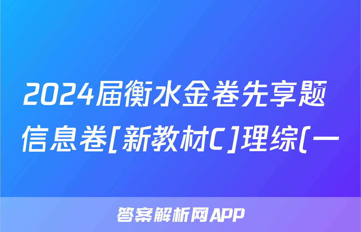 2024届衡水金卷先享题 信息卷[新教材C]理综(一)1答案正在持续更新,目前2024-2025衡中同卷答案网为大家整理了相关试题及答案,供大家查缺补漏,高效提升成绩。