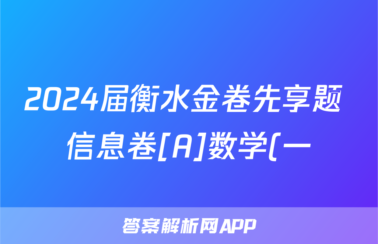 2024届衡水金卷先享题 信息卷[A]数学(一)1答案正在持续更新,目前2024-2025衡中同卷答案网为大家整理了相关试题及答案,供大家查缺补漏,高效提升成绩。