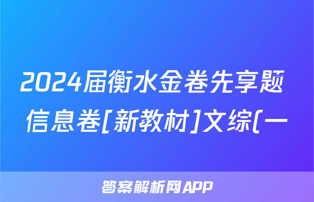 2024届衡水金卷先享题 信息卷[新教材]文综(一)1答案正在持续更新,目前2024-2025衡中同卷答案网为大家整理了相关试题及答案,供大家查缺补漏,高效提升成绩。