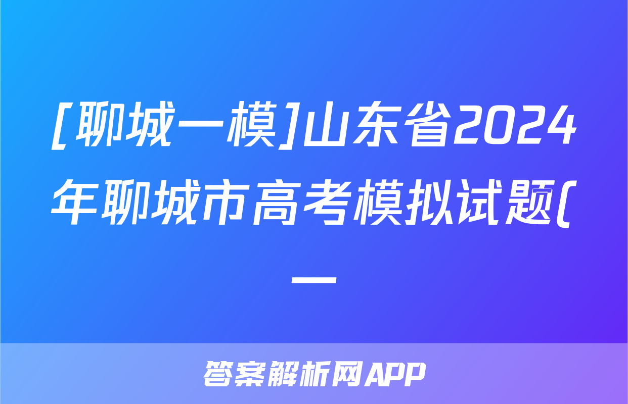 [聊城一模]山东省2024年聊城市高考模拟试题(一)1政治答案正在持续更新,目前2024-2025衡中同卷答案网为大家整理了相关试题及答案,供大家查缺补漏,高效提升成绩。