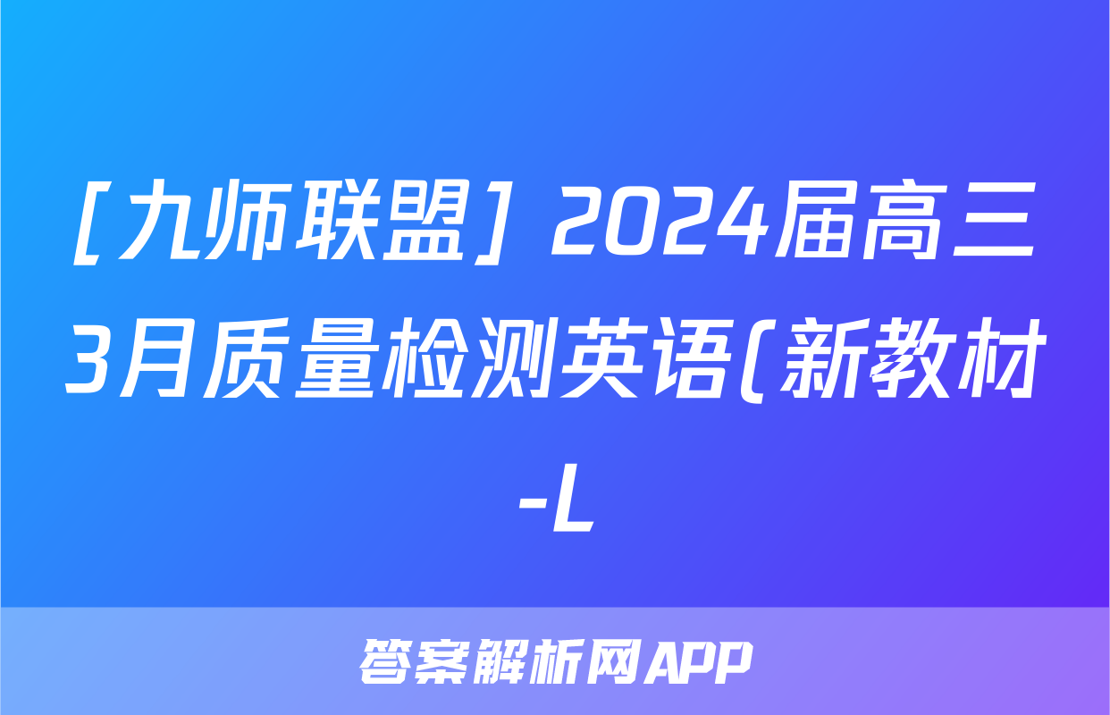 [九师联盟] 2024届高三3月质量检测英语(新教材-L)答案正在持续更新,目前2024-2025衡中同卷答案网为大家整理了相关试题及答案,供大家查缺补漏,高效提升成绩。