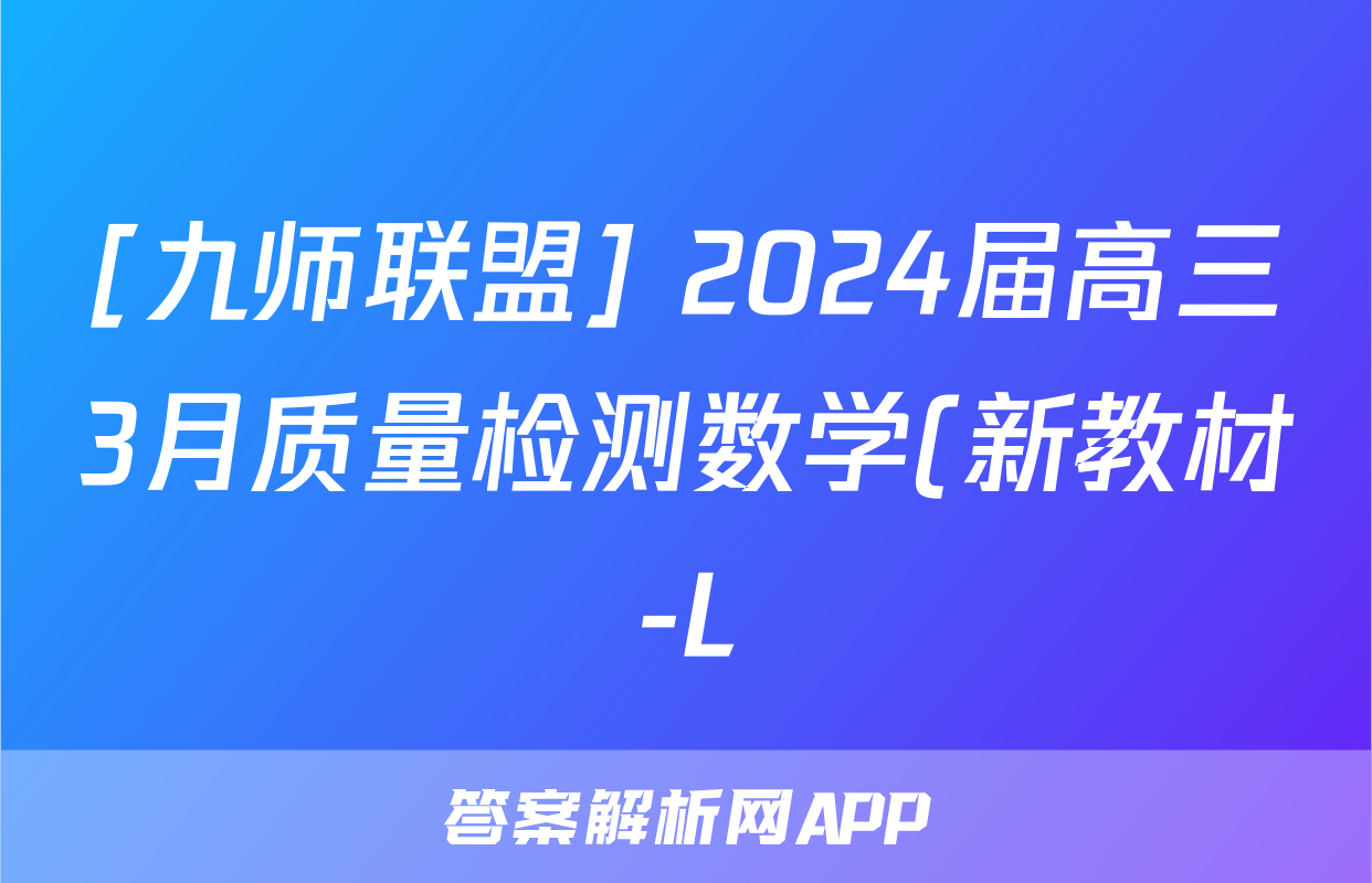 [九师联盟] 2024届高三3月质量检测数学(新教材-L)答案正在持续更新,目前2024-2025衡中同卷答案网为大家整理了相关试题及答案,供大家查缺补漏,高效提升成绩。