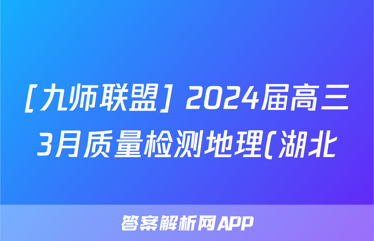 [九师联盟] 2024届高三3月质量检测地理(湖北)试题正在持续更新,目前2024-2025衡中同卷答案网为大家整理了相关试题及答案,供大家查缺补漏,高效提升成绩。