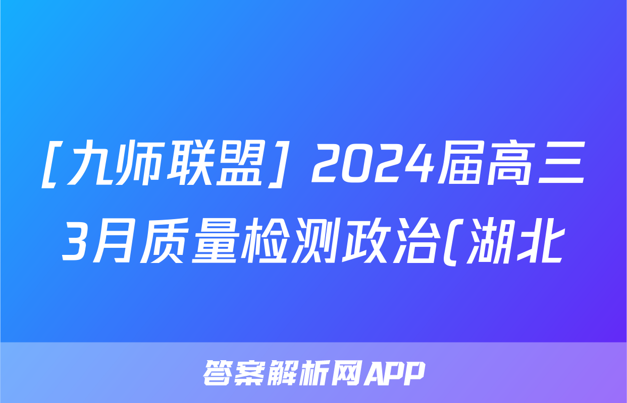 [九师联盟] 2024届高三3月质量检测政治(湖北)试题正在持续更新,目前2024-2025衡中同卷答案网为大家整理了相关试题及答案,供大家查缺补漏,高效提升成绩。