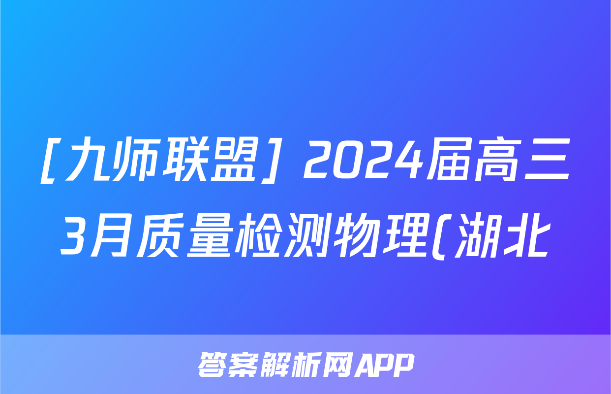 [九师联盟] 2024届高三3月质量检测物理(湖北)试题正在持续更新,目前2024-2025衡中同卷答案网为大家整理了相关试题及答案,供大家查缺补漏,高效提升成绩。