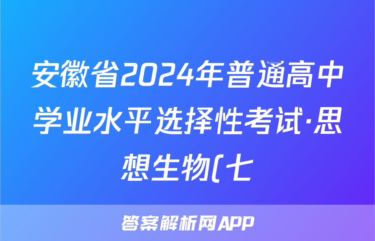 安徽省2024年普通高中学业水平选择性考试·思想生物(七)7[24·(新高考)ZX·MNJ·思想生物·AH]试题正在持续更新,目前2024-2025衡中同卷答案网为大家整理了相关试题及答案,供大家查缺补漏,高效提升成绩。