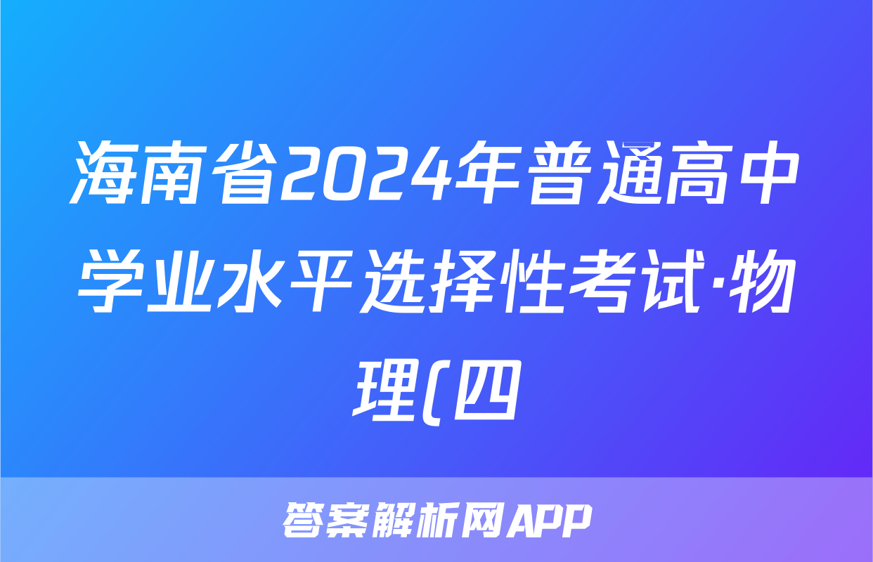 海南省2024年普通高中学业水平选择性考试·物理(四)4[24·(新高考)ZX·MNJ·物理·HAIN]答案正在持续更新,目前2024-2025衡中同卷答案网为大家整理了相关试题及答案,供大家查缺补漏,高效提升成绩。