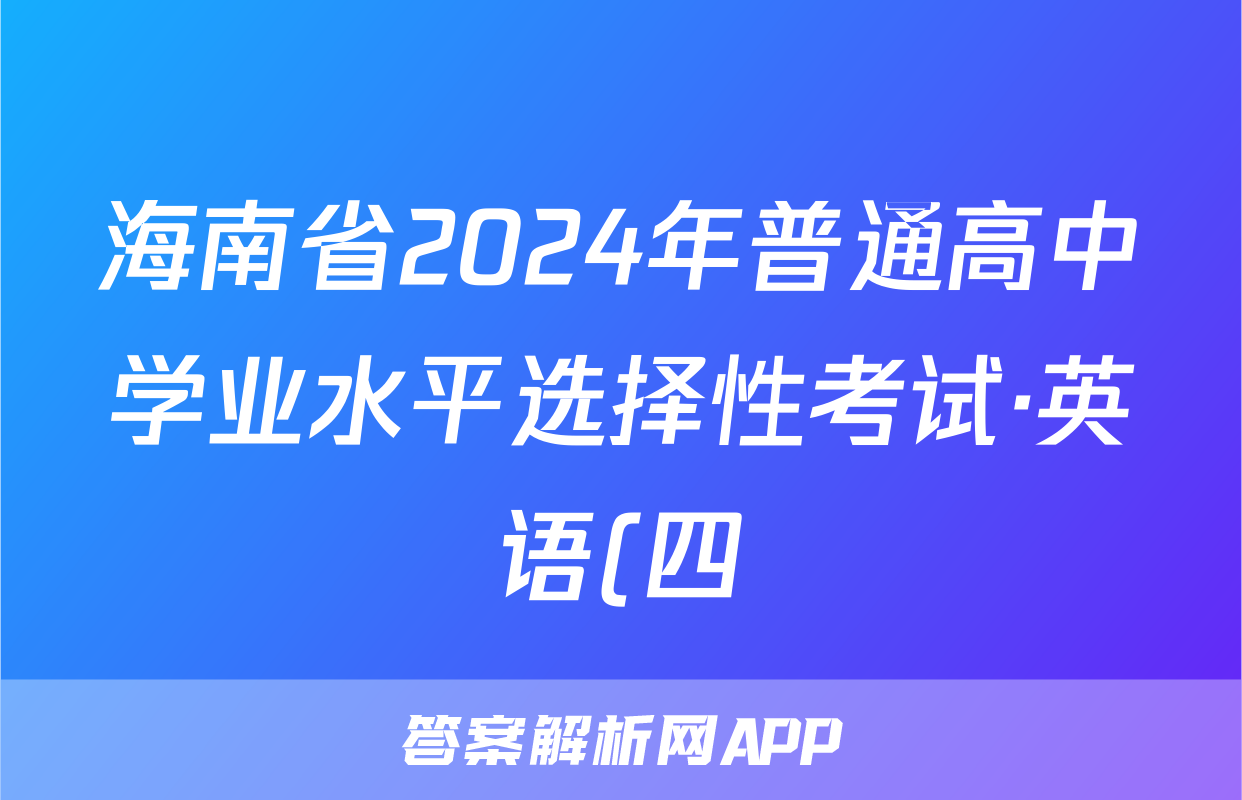 海南省2024年普通高中学业水平选择性考试·英语(四)4[24·(新高考)ZX·MNJ·英语·HAIN]答案正在持续更新,目前2024-2025衡中同卷答案网为大家整理了相关试题及答案,供大家查缺补漏,高效提升成绩。