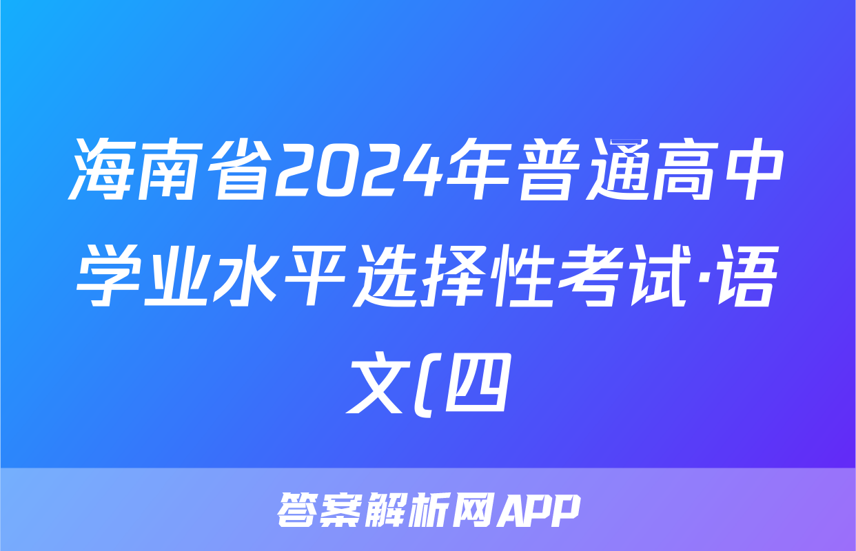 海南省2024年普通高中学业水平选择性考试·语文(四)4[24·(新高考)ZX·MNJ·语文·HAIN]答案正在持续更新,目前2024-2025衡中同卷答案网为大家整理了相关试题及答案,供大家查缺补漏,高效提升成绩。