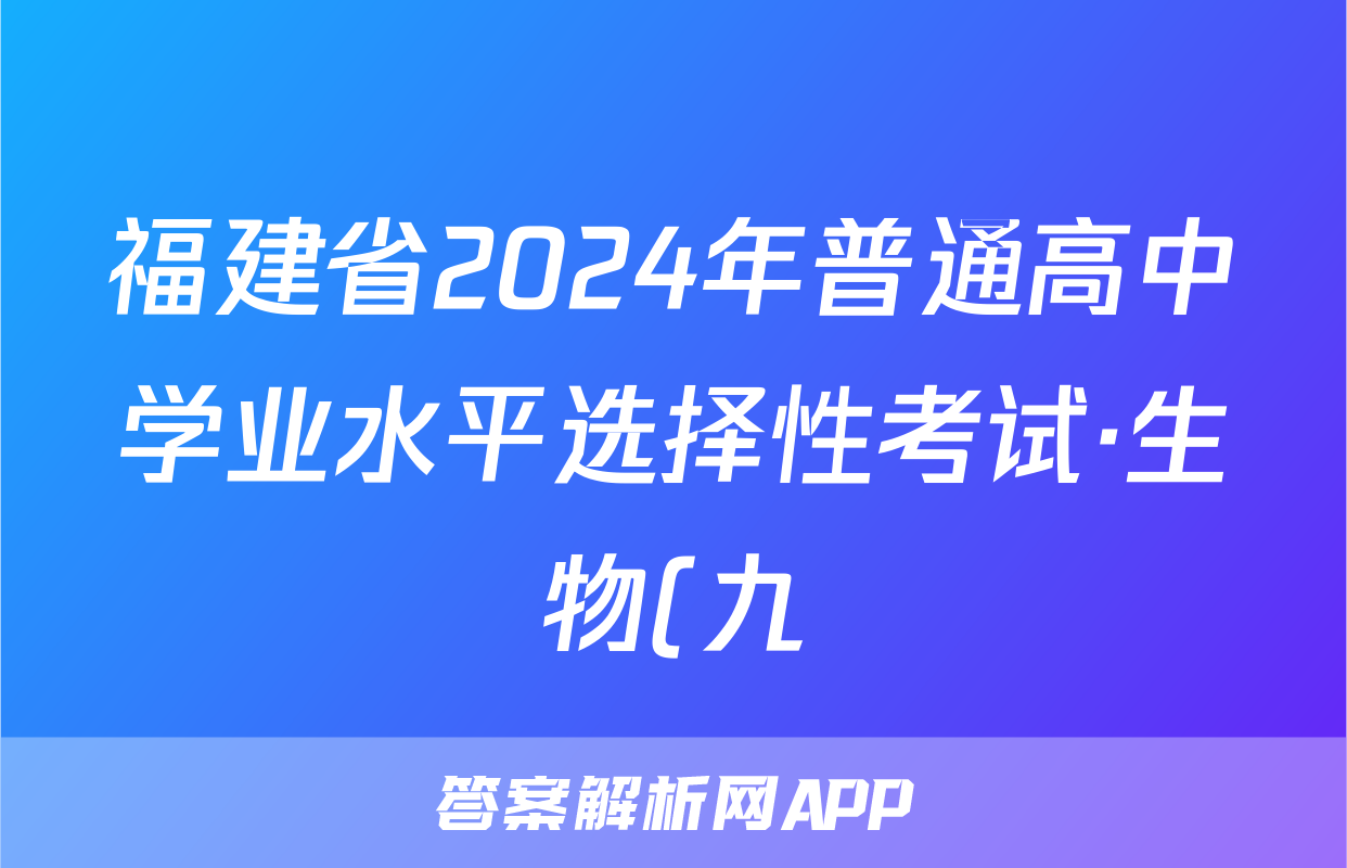 福建省2024年普通高中学业水平选择性考试·生物(九)9[24·(新高考)ZX·MNJ·生物·FJ]试题正在持续更新,目前2024-2025衡中同卷答案网为大家整理了相关试题及答案,供大家查缺补漏,高效提升成绩。