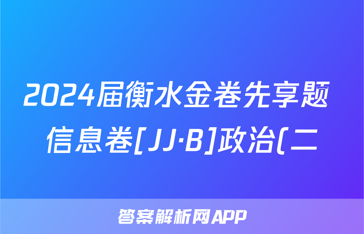 2024届衡水金卷先享题 信息卷[JJ·B]政治(二)2答案正在持续更新,目前2024-2025衡中同卷答案网为大家整理了相关试题及答案,供大家查缺补漏,高效提升成绩。